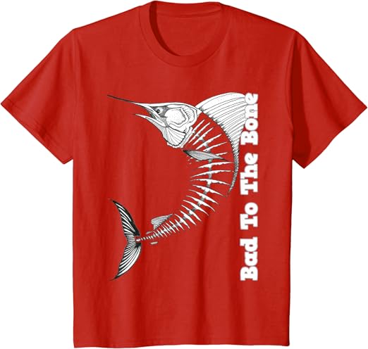 Amazon Com Marlin T Shirt Bad To The Bone Marlin Fish Skeleton Clothing Shoes Jewelry